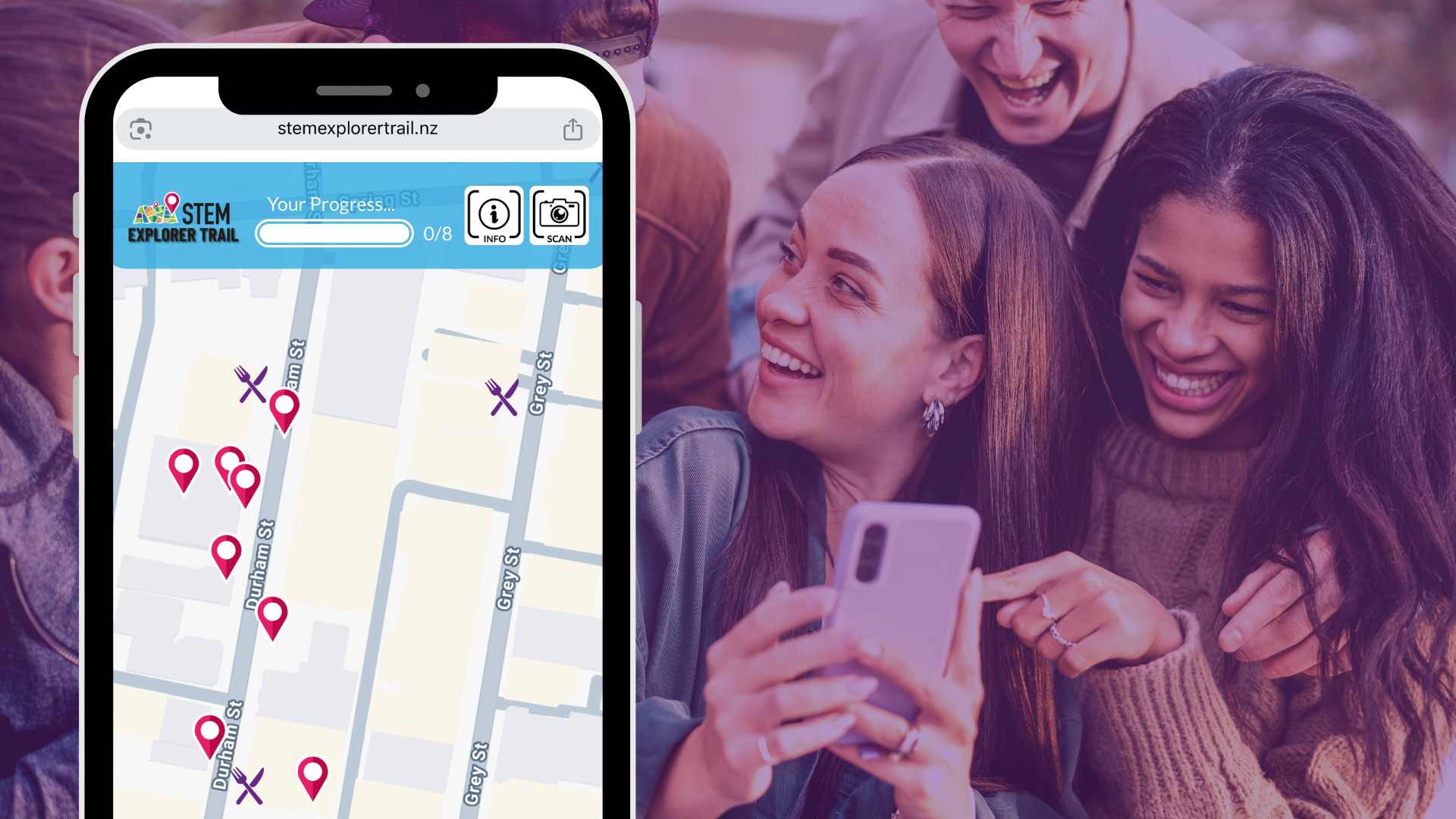 The STEM Wana Explorer Trail Web App is a customisable online interactive wayfinding event map especially designed for managing events across multiple locations and venues.